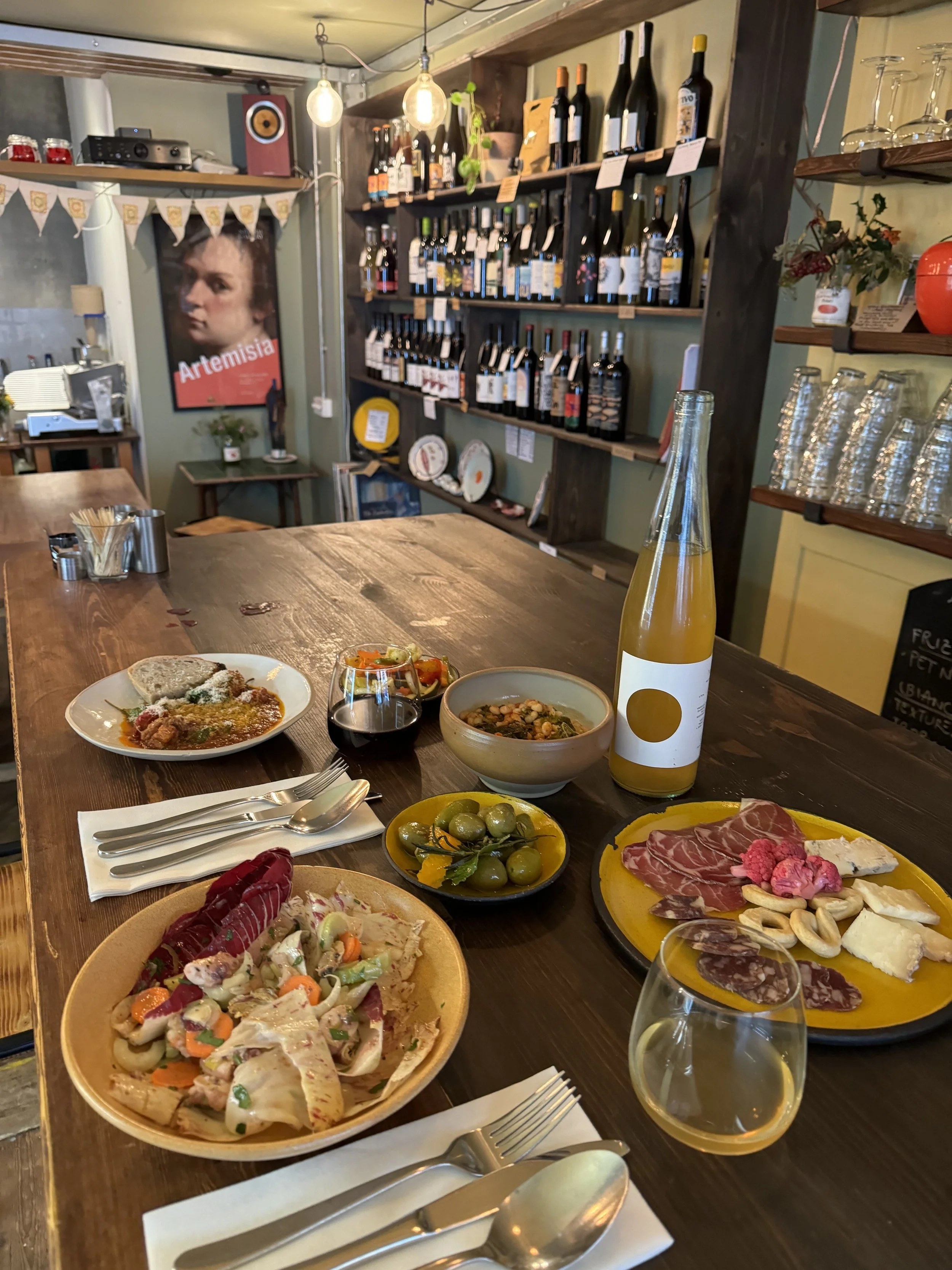Natural wines by the glass (many imported by us), aperitivo-style cocktails and small plates.